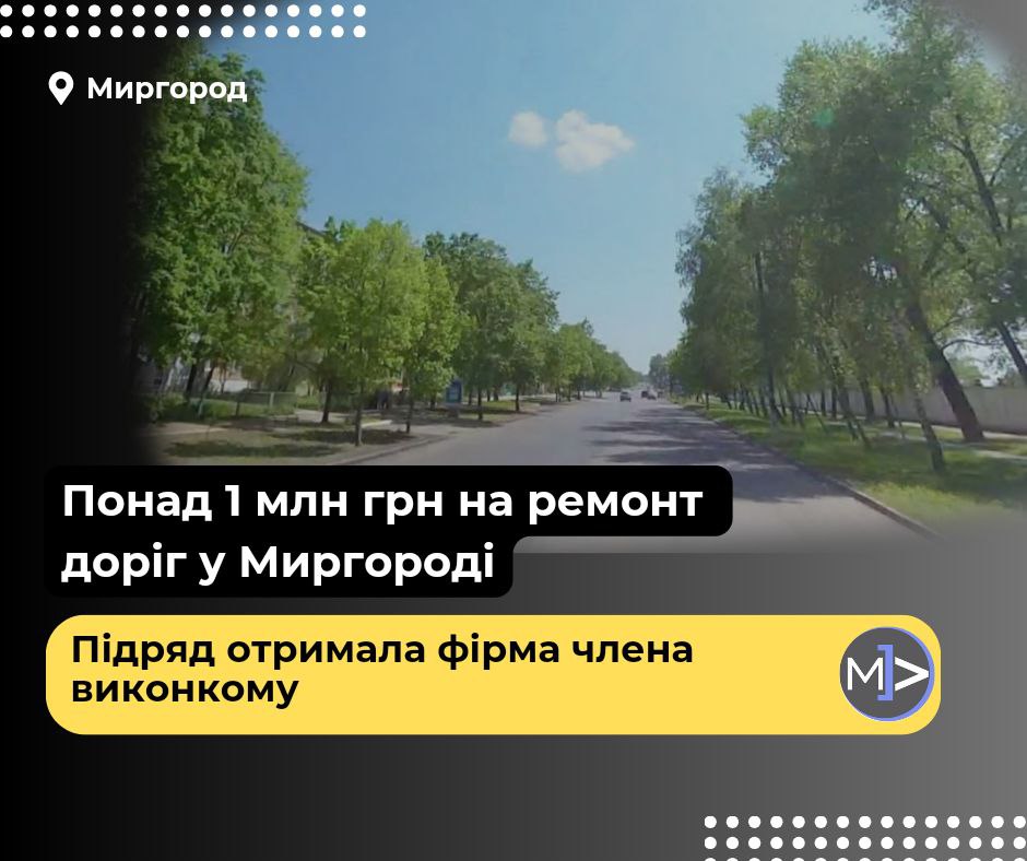Понад 1 млн грн на ремонт доріг у Миргороді. Підряд отримала фірма члена виконкому