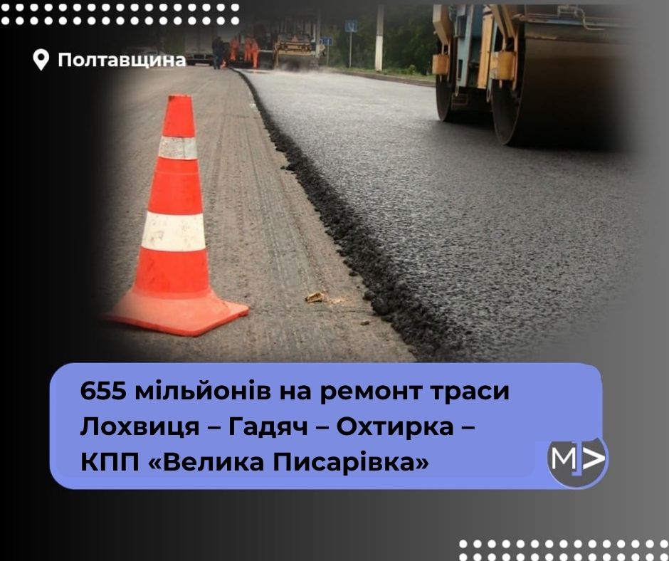 655 мільйонів на ремонт траси Лохвиця – Гадяч – Охтирка – КПП «Велика Писарівка»
