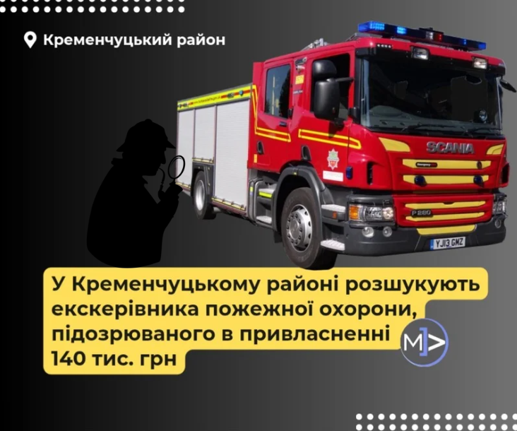 У Кременчуцькому районі розшукують екскерівника пожежної охорони, підозрюваного в привласненні 140 тис. грн