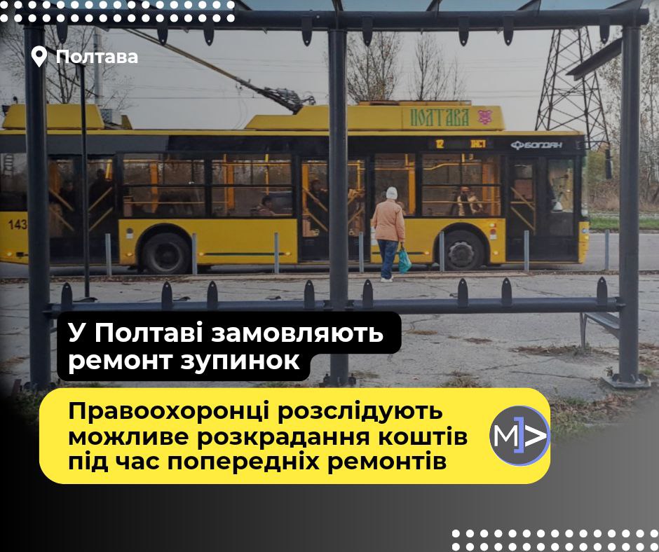 У Полтаві замовляють ремонт зупинок. Правоохоронці розслідують можливе розкрадання коштів під час попередніх ремонтів
