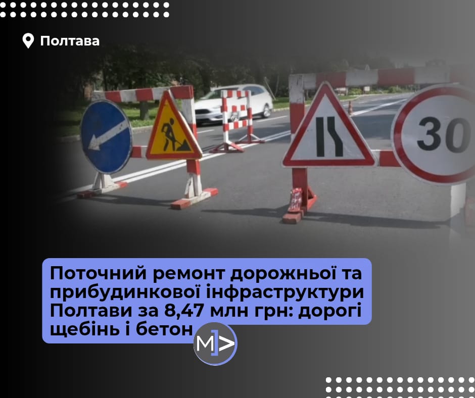 Поточний ремонт дорожньої та прибудинкової інфраструктури Полтави за 8,47 млн грн: дорогі щебінь і бетон