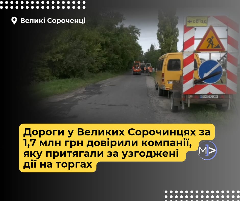 Дороги у Великих Сорочинцях за 1,7 млн грн довірили компанії, яку притягали за узгоджені дії на торгах