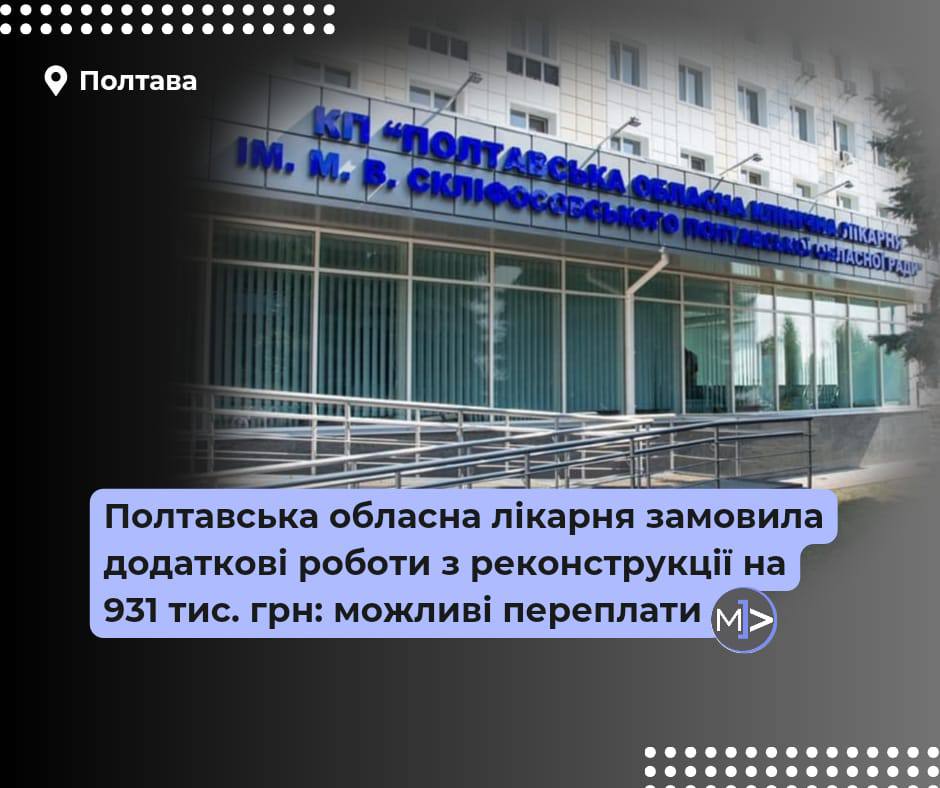 Полтавська обласна лікарня замовила додаткові роботи з реконструкції на 931 тис. грн. Можливі переплати